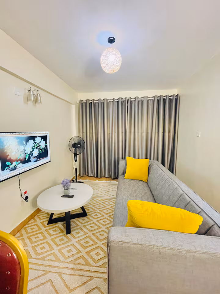 This apartment is located in South B, Nairobi. It’s near JKIA,Wilson Airport,SGR Terminus, the Expressway and Nairobi CBD. It’s also in close proximity with major shopping malls like Capital Center (within walking distance), Imaara Mall and several recreational facilities within Nairobi. It’s also near the Nairobi National park. Ideal for long-term as well as short-term stays as there’s a dedicated working space. It’s in a very peaceful and secure neighbourhood.